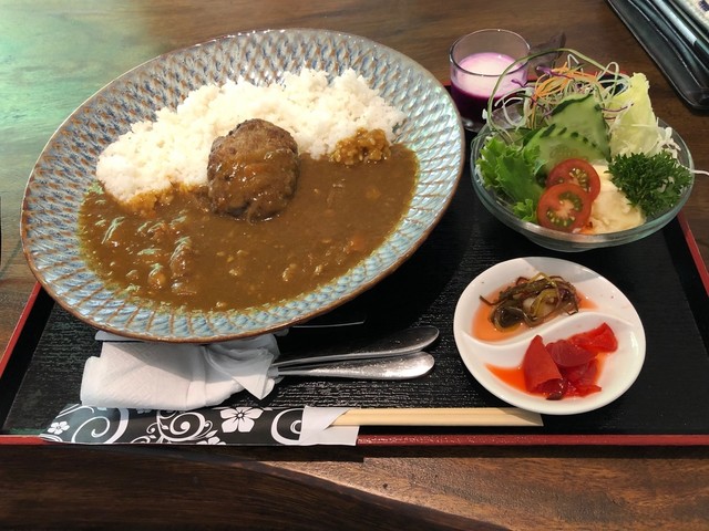 昨日見たお隣のカレーが気になりハンバーグカレーを注文。