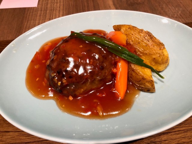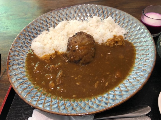 ハンバーグは熱々!。柔らかくてカレーに崩れていきます。