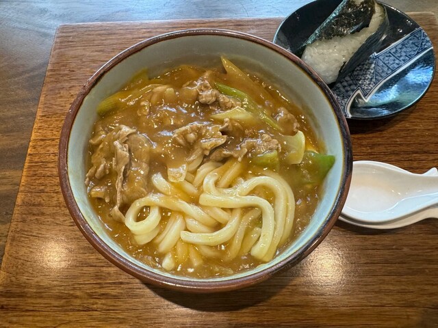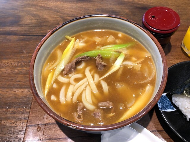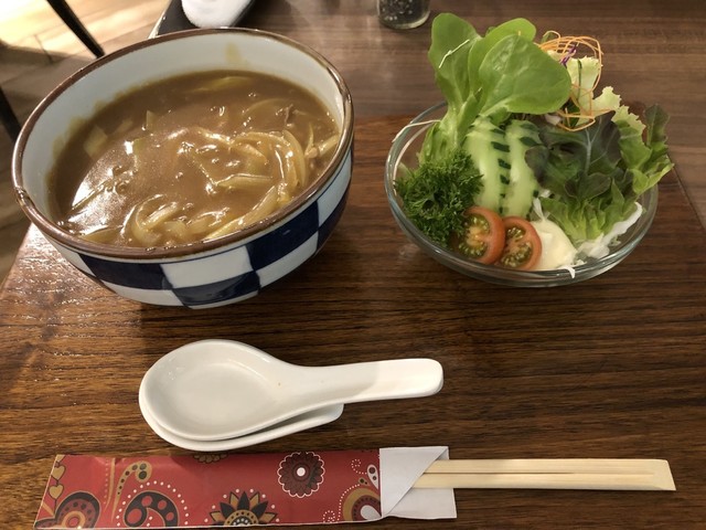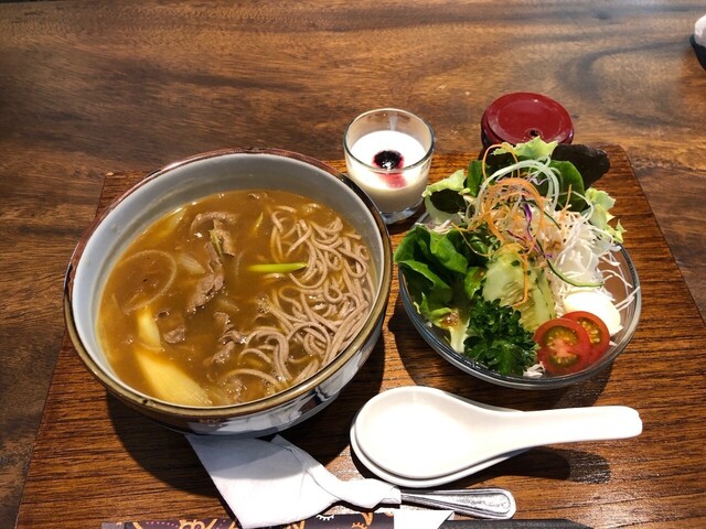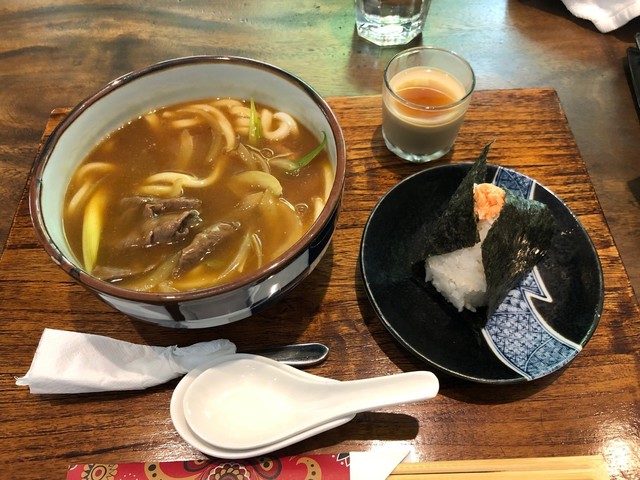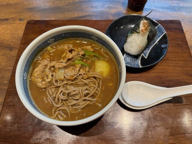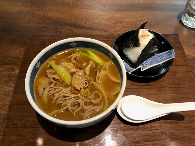 注文したのは、カレーそばとおにぎりのセット。おにぎりかサラダを選べます。
