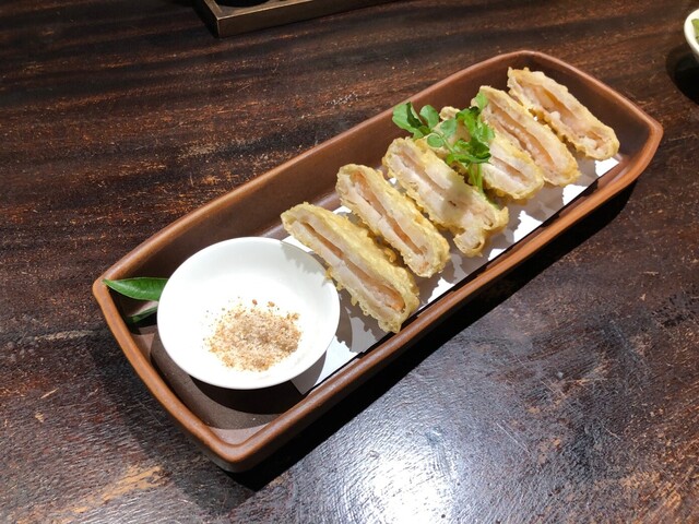 パクチー豆腐は豆腐にクリームチーズが入っていて美味しいです~。