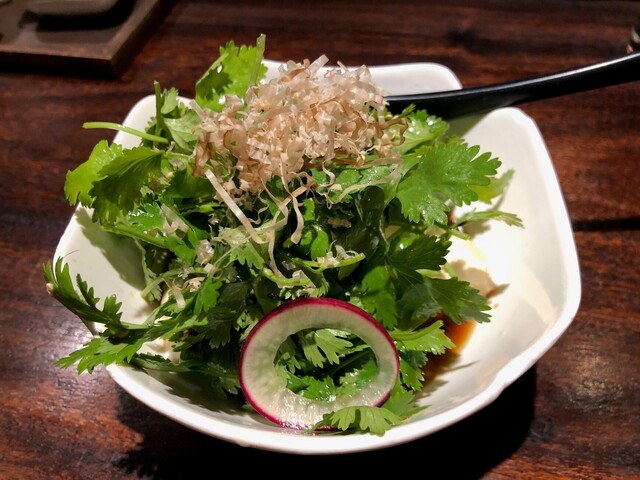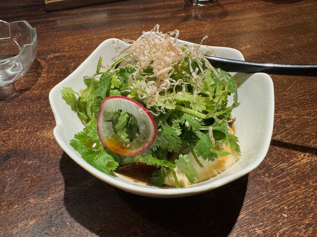 パクチー豆腐は豆腐にクリームチーズが入っていて美味しいです~。