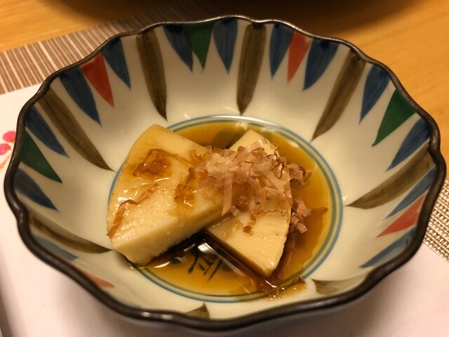 厚揚げは生姜醤油で!。なめらかな豆腐が美味しいです~。