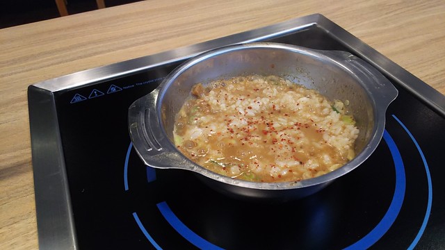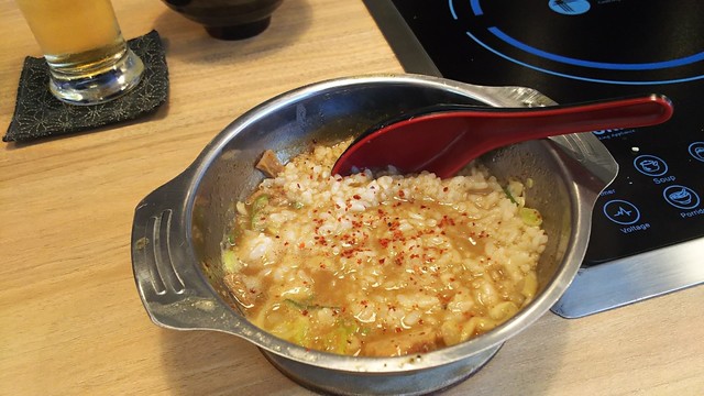 1809_Fujiyama55_Tsukemen@78,000Rp(つけ麺)+Tokumori@8,000(特盛)+Mini Gohan@7,000Rp(白ご飯)_温めたつけ汁に白ご飯を投入!出来立てアツアツの雑炊を頂きます!ジャンキーですけどこれが美味しいんですよね!
