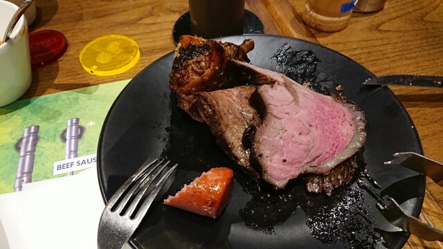 お肉たっぷりです!。シュラスコ、ガーリックステーキにビーフソーセージに