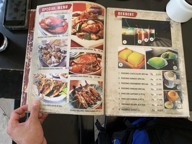Merdeka Walkというメダンの中心部にある広場にあります。メニューがシーフードと点心が中心ですが、ナシゴレンやミーゴレンなどのインドネシア料理もあります。ベジタリアンのメニューもあります。レストランの名前にあるNelayanはインドネシア語で漁師という意味です。夜になると賑やかになります。デザートを食べにここに来ましたので、いくつかの点心とドリンクを注文しました。特に5個入りのBakso Udang Mayonaise(マヨネーズエビミートボール)がおすすめです。