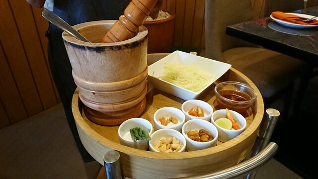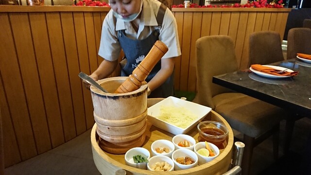 2001_Noble by Zab Thai_Papaya salad(Prawn)@75,000Rp(ソムタム)_ソムタムは目の前で作ってくれるのでライブ感抜群!!
