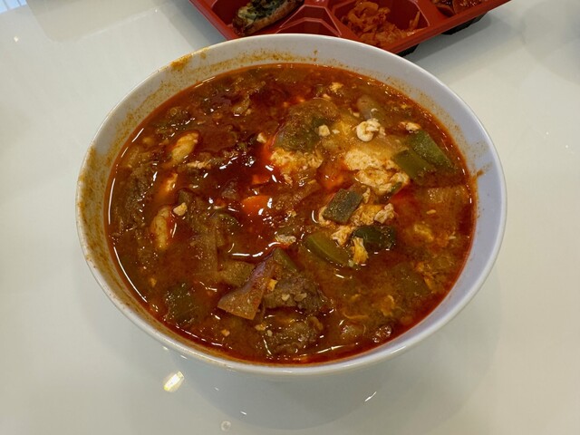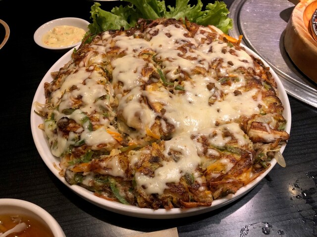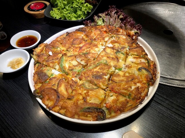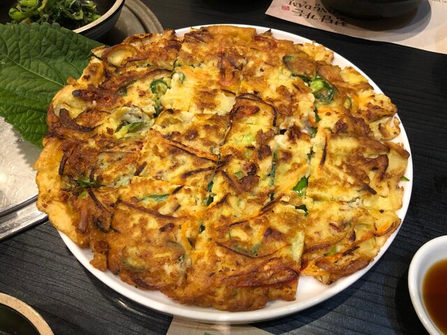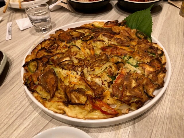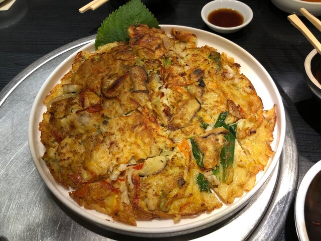 チヂミはフワフワ、魚介の具がたくさん入っています~。