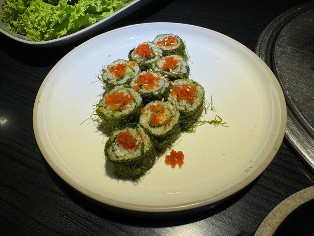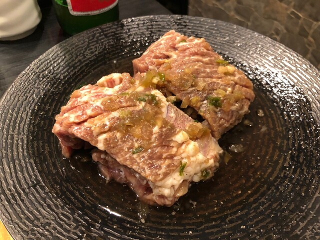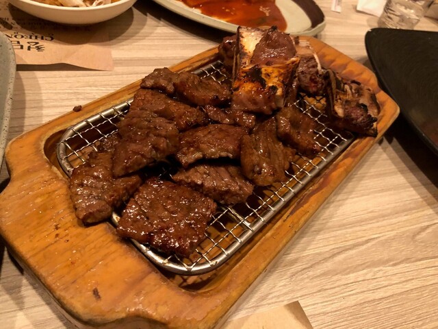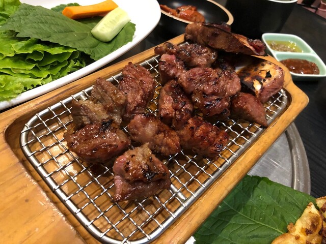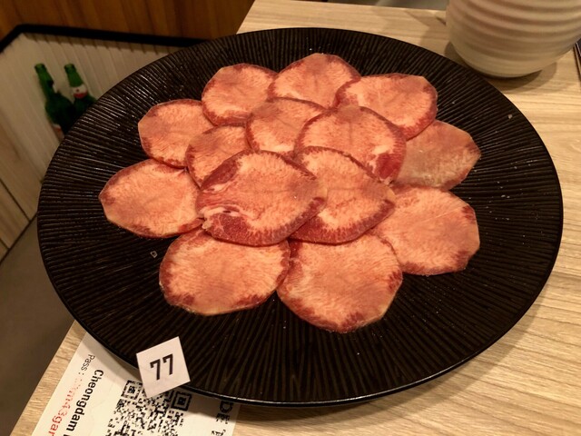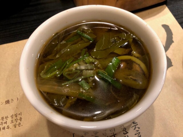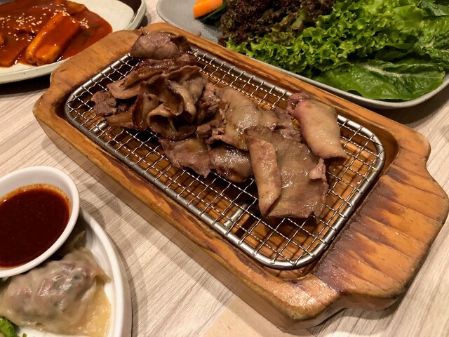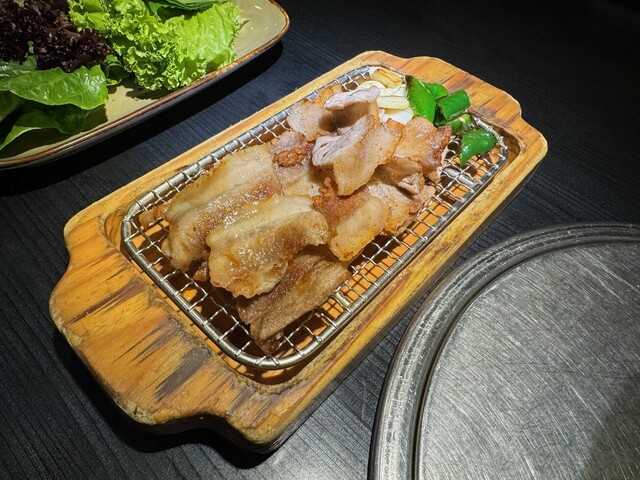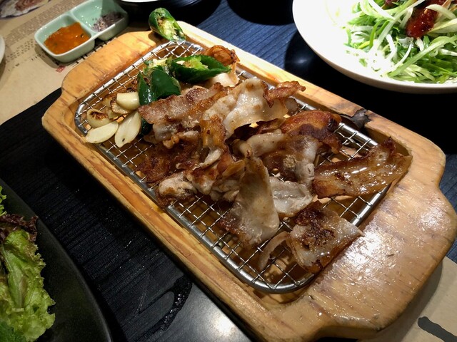 薄切のサムギョプサルは脂がカリッと焼けていて美味しいです~。