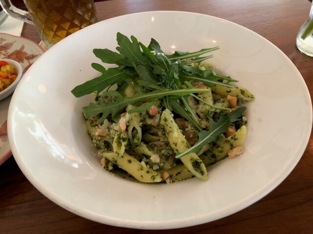 バジルのペストのペンネは爽やかなお味!。