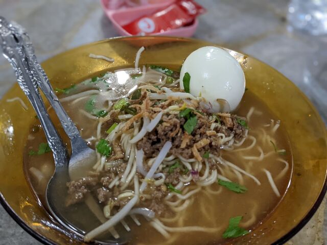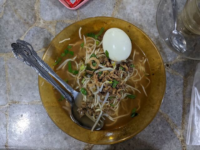 前の屋台で売っているスープそばを持ち込みで食べても問題ありません。