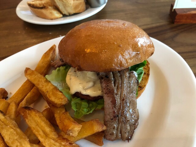こちらのアメリカ料理店でランチ!。