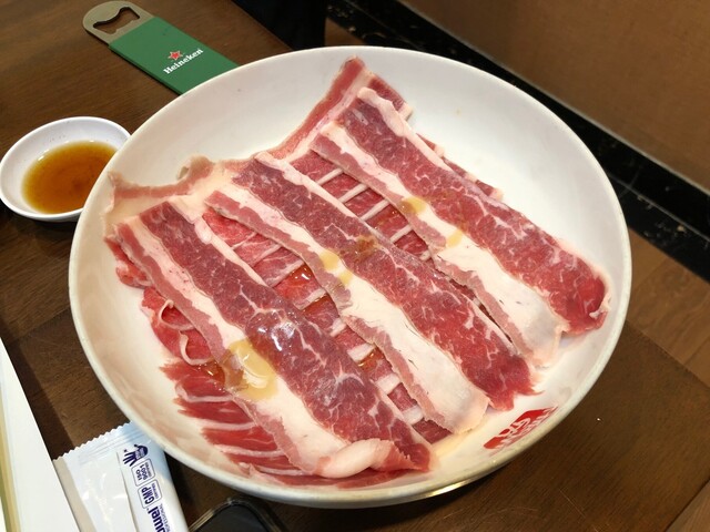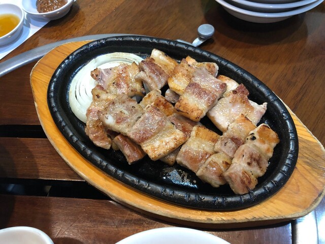 サムギョプサルはカリっと焼けた脂が美味しいです~。