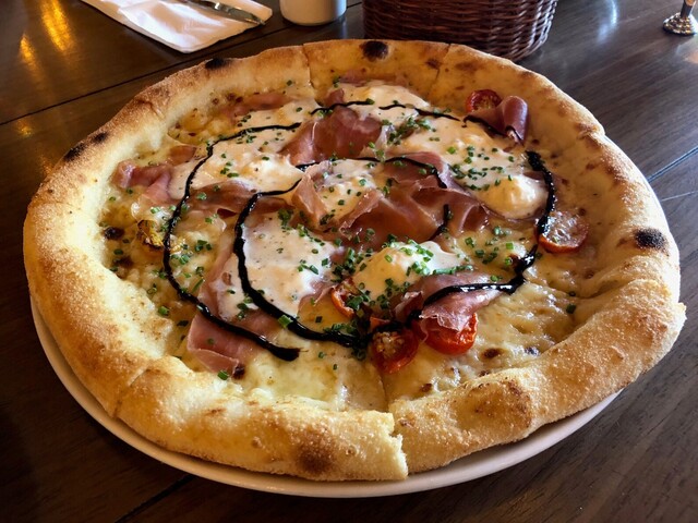 ピッツァはブッラータとパルマハム!。