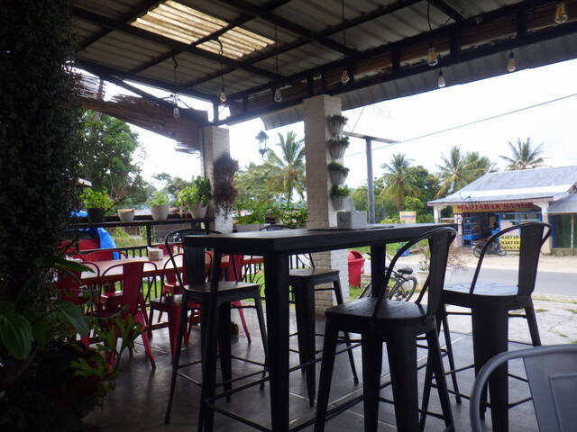 小腹が空いたので「El Tona Coffeehouse」で休憩しました。「フィッシュアンドチップス」50千ルピアと「アボカドジュース」23千ルピア、「アイスティー」12千ルピアを注文しました。「フィ...