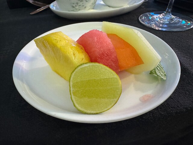マンゴーのソルベは唐辛子が入っていてスパイシー!。