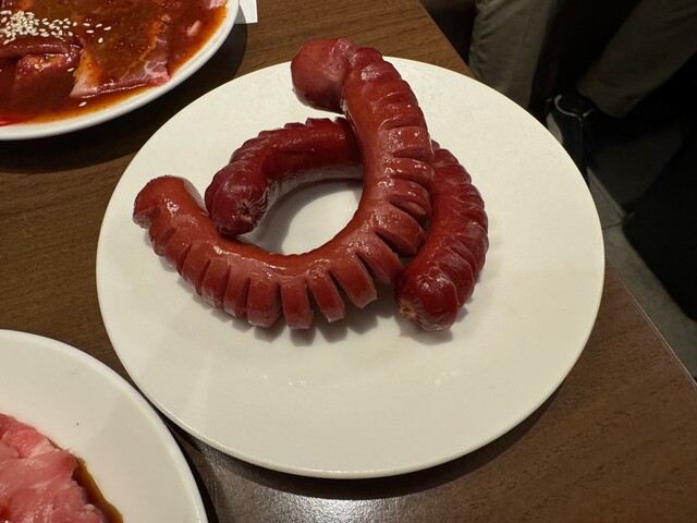 ロースにカルビ、ガーリックバター、テイスティカルビ、ビーフソーセージを頼みました~。