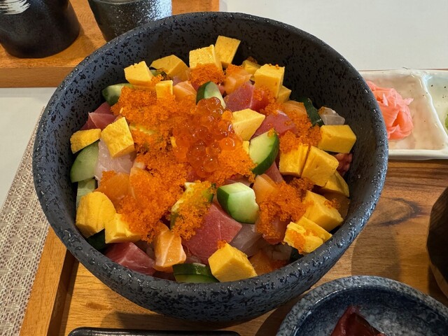 鮪、白身、いくら、イカ、タコ、エビ、玉子焼き、きゅうり、とびっこ!。