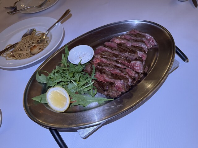 ワギュウのステーキはミディアムレアで!。