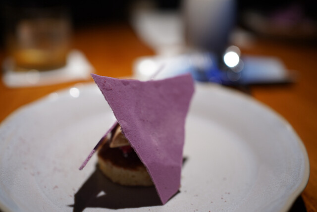 → サツマイモと熟成鴨、パンノキの発酵菓子(テープ)、鴨の濃厚なジュで仕上げ。