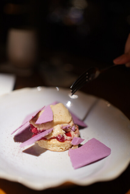 → 3種のミルクケーキ「トレスレチェス」にブラッドベリー(酸味)、紅茶菌(SCOBY)、ロングペッパーのスパイシーな余韻。