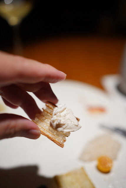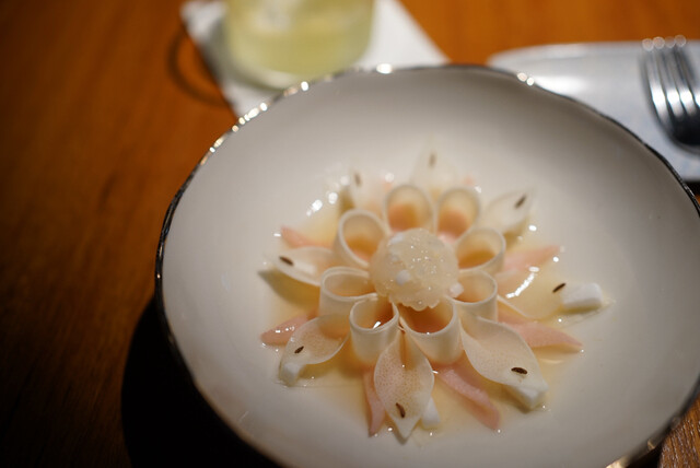 最初に出てくるのは、屋上で育ったハーブを使った「Rooftop flora」。まるで花束のような一皿から始まり、「Root System」では発芽した根菜が土の香りをまとって登場。味の奥に“地面の記憶”が眠っているかのようです。