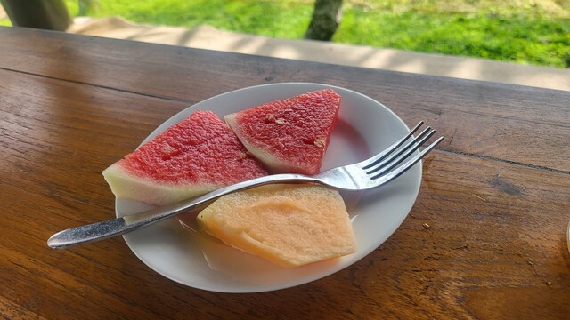 ワンプレートにジュース、スープ、フルーツが付いてる。