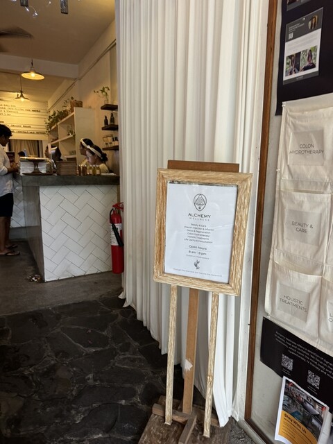 Ubudのお店はとてもカジュアルで席数が多く、予約無しでふらっと入れる。道路を挟んで向かいにAlchemyヨガセンターがあるので、客層は欧米人のヨガ愛好者風の方が多い。
