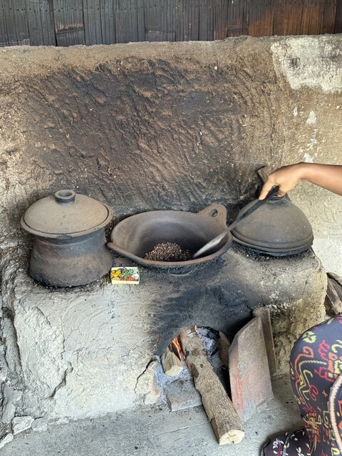 スタッフに案内され、コーヒーやバニラの木の茂みに囲まれた階段を降りると、ジャコウ猫2匹がケージに入っていた。2匹は観光客用に一時的に入れられているという事で、基本はコーヒー農園で放し飼いされているそう。眠っているのか、スタッフが声をかけても背中を向けたままだった。ジャコウ猫科のハクビシンは見た事があり、後ろ姿はそっくり。顔は少し違うらしい。