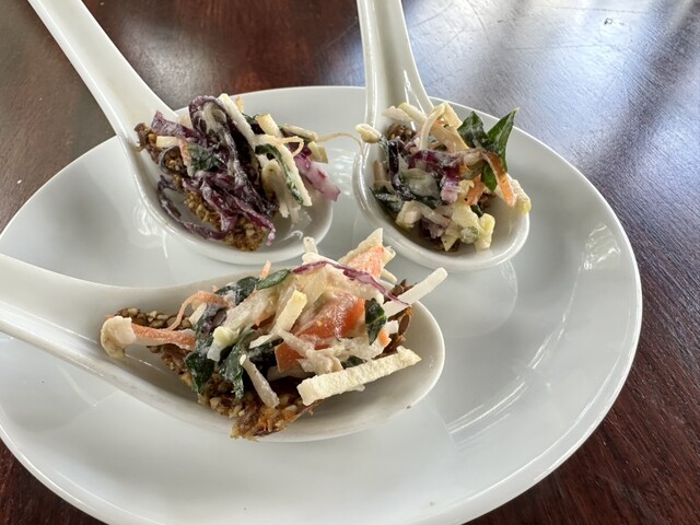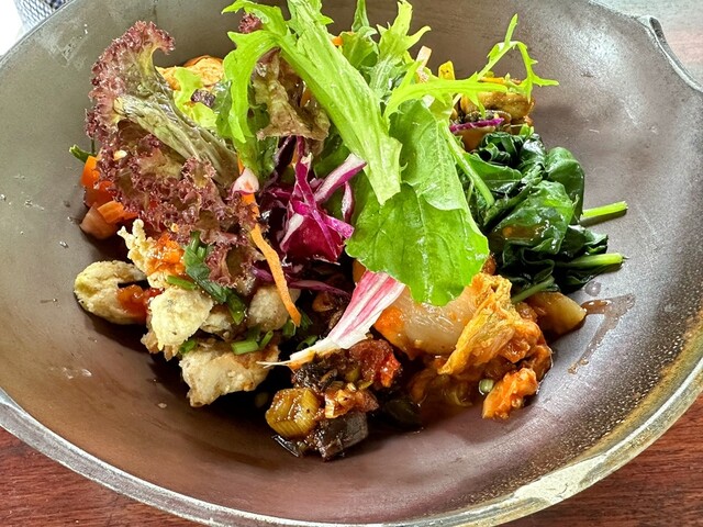 華やかな料理をひと口ずつ味わうたびに、滋味深い野菜や穀物の栄養が身体の隅々にまで染み渡っていくような感覚に包まれた。豊かで奥深い、ウブドでの貴重な「食体験」だった。