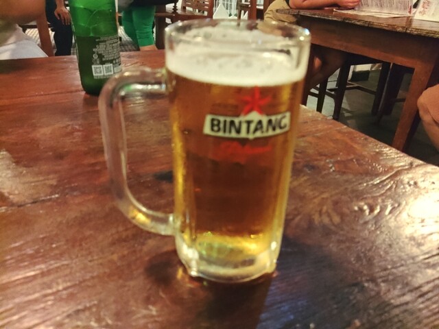 バリ島初日20:00過ぎにホテル着、情報無しで近所の開いてる店にって事で豚の看板のある店へ