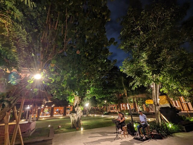夕食は中庭に面したインドネシア料理を楽しむのですが(後述)、生のバンドが入り子供たちは芝生の上を駆け巡り、何とも平和で豊かな空間。客層は殆どが欧米人で、30-50代が中心。年配の方々は殆ど見かけませんでした。
