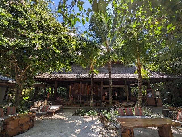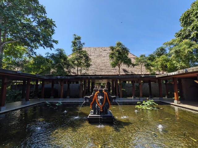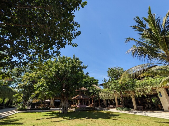すごく素敵な空間なんだけれども。日中の雰囲気はコチラ。リゾート全体のコンセプトはバリの村々だそうで、地元の伝統的な資材を多用しているそうです。