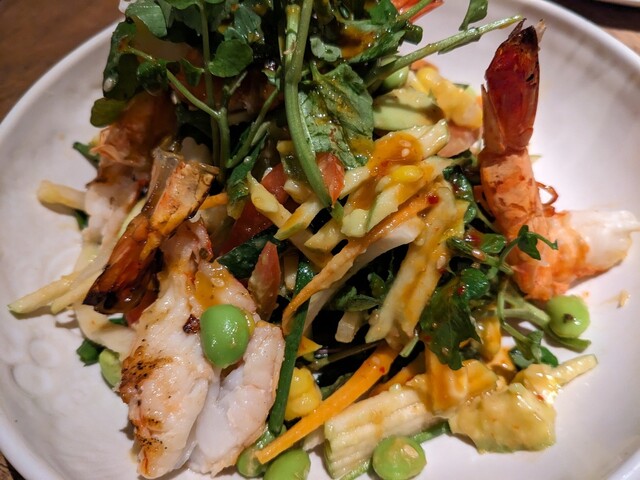 AvocadoPrawnSaladは程よく甘酸っぱく、東南アジア調の味わい。エビもたっぷり入っており安定した美味しさです。