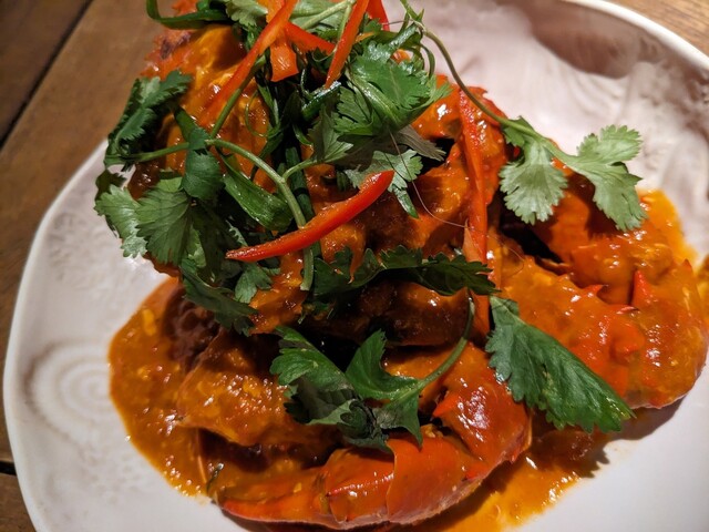 SpicyMudCrabはシンガポールのチリクラブのような味付けですが、カニの身離れが悪くとにかく食べづらい。イボイボがチクチク刺さってめちゃんこ痛いし、途中で心が折れてしまいました。