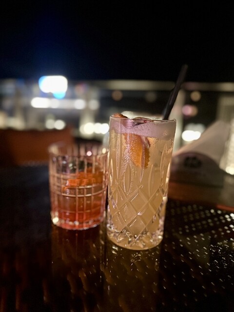 カクテルは1杯2,500円くらいがベースなのでちょっとお高め。今回はシグネチャーカクテルの「ROCK MY WORLD」にしてみました!オレンジやレモングラスなど柑橘系のさっぱりした味わいです!