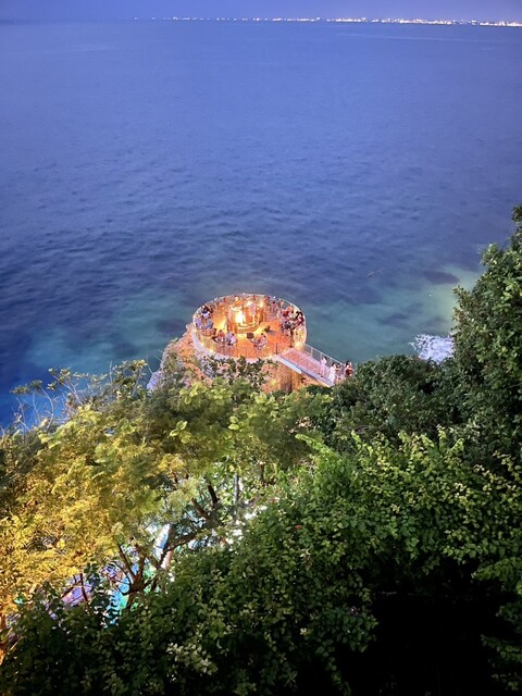 洒落たブティックゾーンを横目に進むと、断崖絶壁のバーエリアが見えてきました。