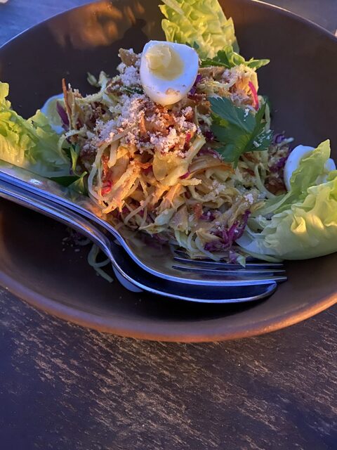SpicedChickenVermicelliSaladをオーダー。Vermicelli(ヴェルミッチェリ)とはイタリアの麺類を使用したサラダのことです。タイ料理系の味付けで美味しい。インドネシア料理とタイ料理は全くの別物なので、同じアジア料理であっても久しぶりに食べると新鮮です。