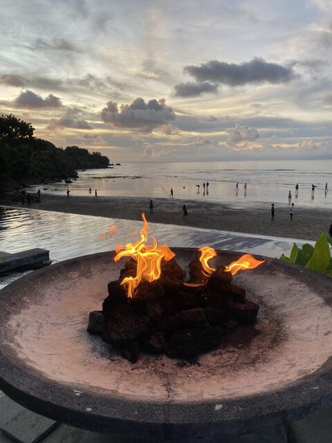 席の周りには火のオブジェがあるのですが、これが結構熱い。南国でこれはちょっと微妙かも。見た目は綺麗なんですけどね。