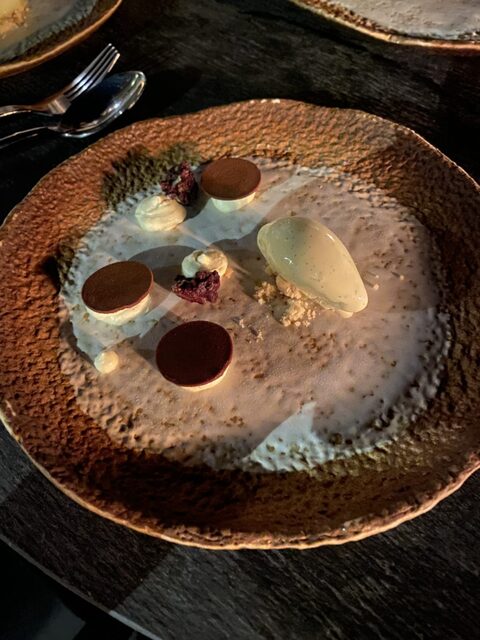 デザートは2人でChocolate&CherryTartをシェアすることに。運ばれてきた皿には鎮座するアイスクリームが。タルトはどこ・・・ここ・・・?