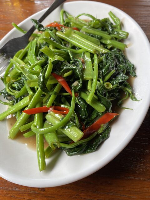chakangkung(空心菜の炒め物)、シンプルながら美味しい。