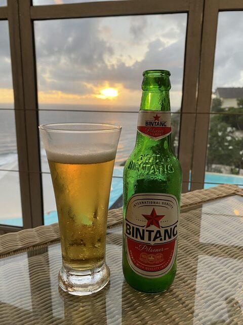 気を取り直してビールで乾杯。ビールと夕日は俺を裏切らない。曇ってるけど。