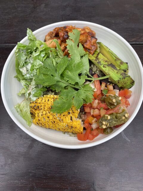 この日はホテルで朝食を食べ過ぎたので、1皿を2人でシェアしました。オーダーしたのはMexicanChickenBowl、こいつまた丼食ってるよ・・・スパイシーなチキンがたっぷり乗っており美味しい。ライスはパクチー入りの混ぜご飯です。丼だけど野菜がたっぷりだから実質0カロリーです。
