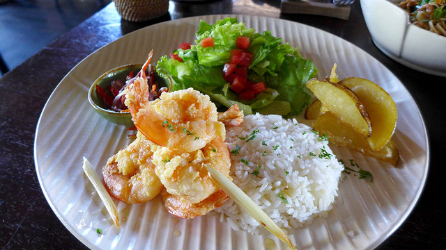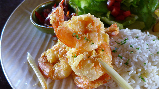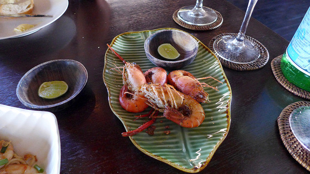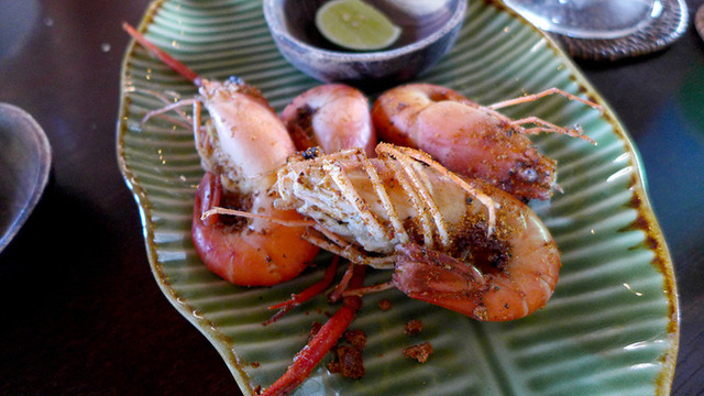 さて、この店はクロボカン通りを南下して、カユアヤ通りに入ったところの右手にあるエビ料理店だ。店は二階にあって店内はなかなかオシャレだ。料理はエビ料理だが何を食べても、とても美味しい。お店の詳細については詳しいHPがあったので、そっちを見てください。