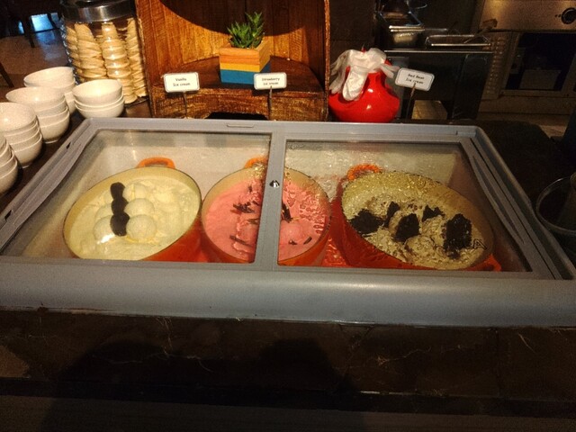 ライブキッチンはヌードルステーションとエッグステーション、エッグステーションはオムレツにそんなに時間かかるん?ってくらい遅い…日本が早いだけか