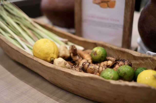 たっぷりのフルーツに絞りたてのジュースが美味!ライブキッチンでは肉団子を入れたインドネシアのスープ「BAKSO」を作ってくれたので肉団子抜きで(もはやBAKSOではない)お願いしました。野菜ベースの優しいスープが沁みる!