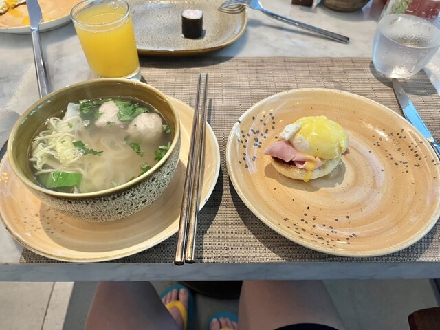 マリオットのプラチナエリート特典で朝食無料でした。