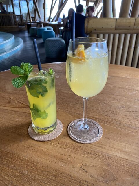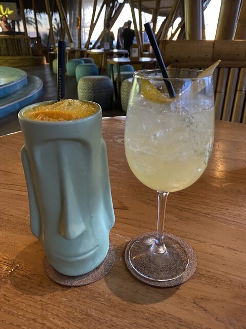 ハッピーアワーはカクテルを2杯頼めば1杯ただなので、まずはカクテルで乾杯。左はParadaiseMojito、右はPeachLoverです(確か)普段はこういったカクテルを飲む機会は少ないですが、南国の海風に当たりながら飲むのは良いですね。