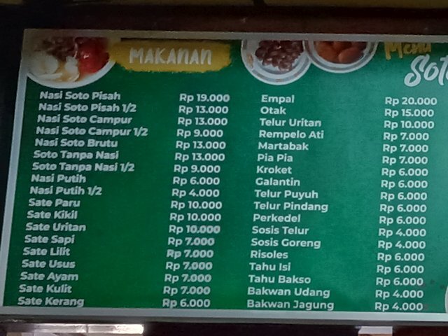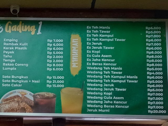 ソトアヤムをご飯なしで注文、Rp.13,000。