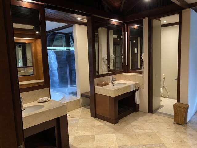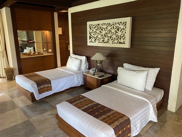 インドネシアのゴルフ場は宿泊施設が併設されていることが多く、こちらのゴルフ場にもコテージが準備されています。ですが、建物はかなり古くメンテナンスも微妙です。泊まるということだけを考えるのであれば十分ですが、ゴルフリゾートを楽しむつもりで来ると拍子抜けすると思います。プールの横にはレストランも有り、こちらのステーキは中々美味しいと評判なのですが、宿泊当日はコロナの影響なのかCloseしていましたので、夕食は外に食べに行きました。詳細は別記事で。