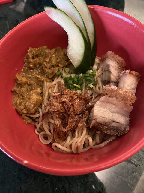 RoastedPorkBakime、こんな店でもインドネシア料理を頼んでしまう・・・味はと言うと、これが滅茶苦茶美味しくてビビりました。インドネシアにしては珍しく麺が少し固ゆでになっており、こってりした味と相まって超好みの味です。トッピングの豚も美味しい。インドネシアで食べたMieで一番美味しいまである。